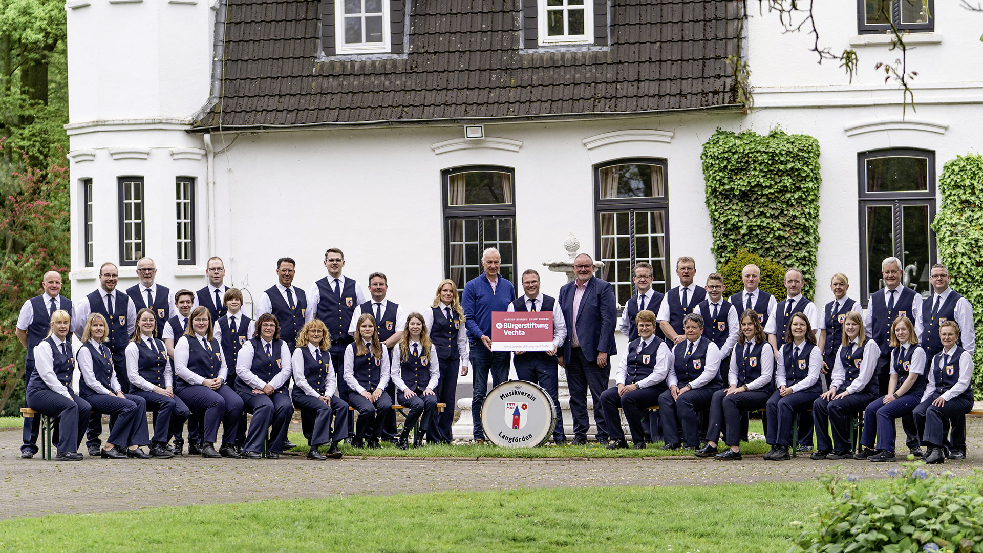 Im Mai 2024 hat die Bürgerstiftung Vechta den Musikverein Langförden bei der Anschaffung neuer Westen unterstützt. Der erste Vorsitzende Tobias Kühlung freute sich im Mai 2024 mit allen Musikern über den Besuch von Stefan Niemeyer und Josef Kleier.